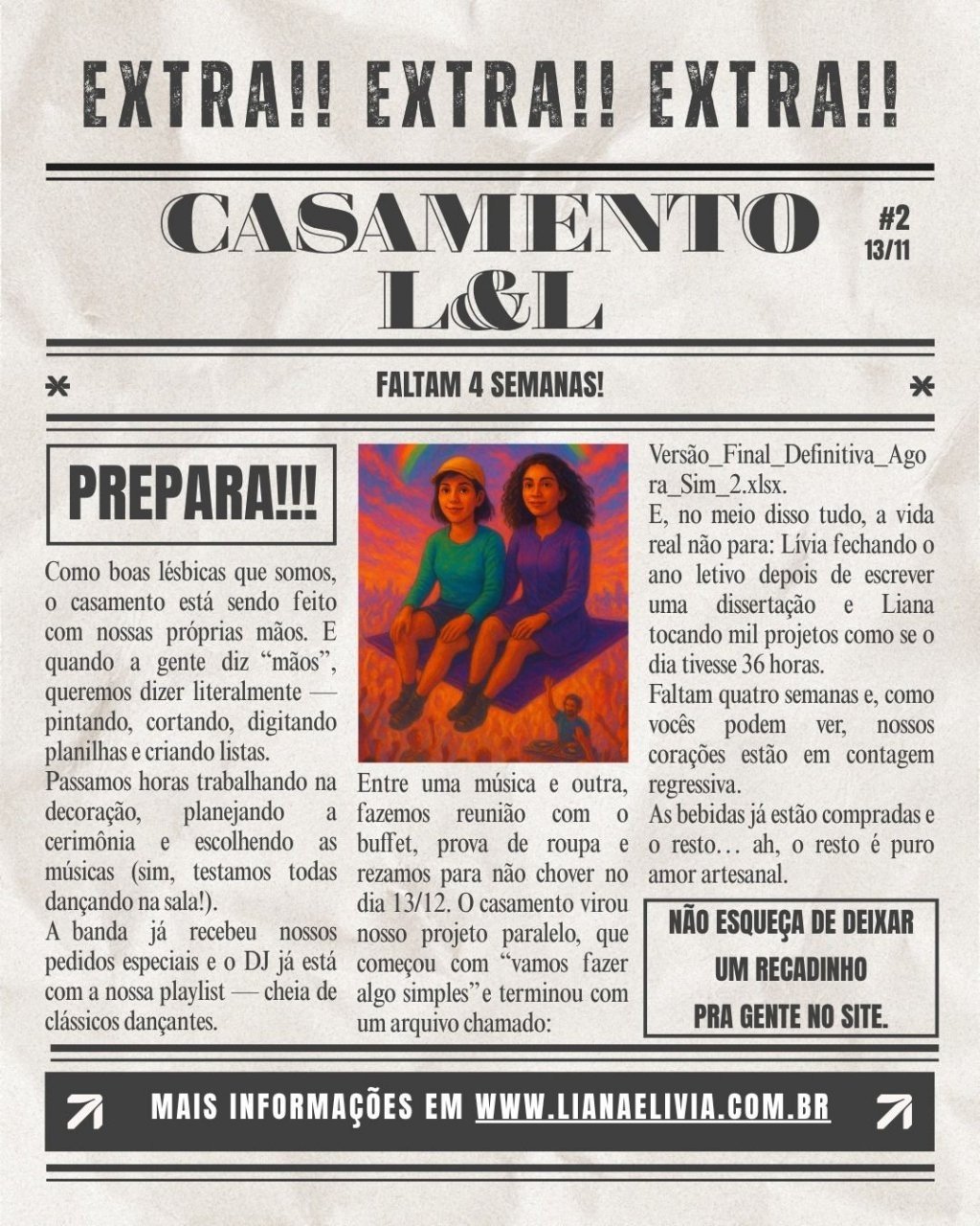 Queridas Liana e Lívia, desejo de coração que o universo seja generoso com o amor e companheirismo de vcs. Um brinde a esse momento mágico!